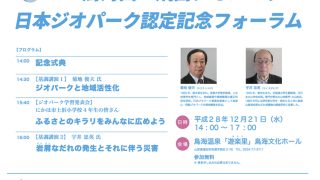 日本ジオパーク認定記念フォーラム開催! 平成28年9月9日(金)、鳥海山・飛島ジオパークが日本ジオパークに認定されたことを記念して、フォーラムを開催いたします! 記念講演では、鳥海山・飛島ジオパークの現地審査において審査員としてお越しになった首都大学東京の菊地俊夫先生より地域活性... 2016.12.01 イベント活動情報 詳しく見る