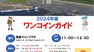 期間限定「飛島ワンコインガイド」の実施について 鳥海山・飛島ジオパークガイド(飛島ワンコインガイド)のお知らせ。 不思議の島をご案内するワンコインガイド ■実施予定日 4月:27日、28日、29日、30日 5月:1日、2日、3日、4日、5日、6日、11日、12日、18日、19日、26日 ... 2024.04.30 イベント 詳しく見る
