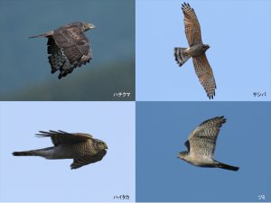 日本で確認されたことのある野鳥の種数は約650。実はその半分以上の種が、季節に応じて移動をする「渡り鳥」です。身近な渡り鳥を挙げると、夏鳥ではツバメやカッコウ、冬鳥ではハクチョウ類やツグミ等が有名です。夏鳥は繁殖地として、冬鳥は越冬地として日本に滞在します。例えば、秋季は夏鳥が東南アジア等に向かっていくのを見送ると同時に、シベリア等から南下してくる冬鳥を迎え入れる時期。また、北海道や東北などの多雪地から雪の少ない地域へと国内移動する野鳥もいます。この野鳥の大移動を観察する楽しみ方の一つに“タカ(鷹)の渡り”があります。見晴らしの良い眺望点から、目の前を通過するタカを見る。それらを写真に収めたり通過する数をカチカチとカウンターで数えたりと楽しみ方は様々。全国各地に観察スポットがあり、メッカでは1日で1,000羽以上が観察されています。鳥海山は全国有数とまではいきませんが、鉾立の登山口周辺は秋季の渡りを見るのに適した眺望地。上昇気流に乗ってぐんぐん上昇するタカを間近に見ることができます。今秋は標高1,000mから望む象潟、黄金の稲穂を背景にタカの渡りを間近に見てみませんか。