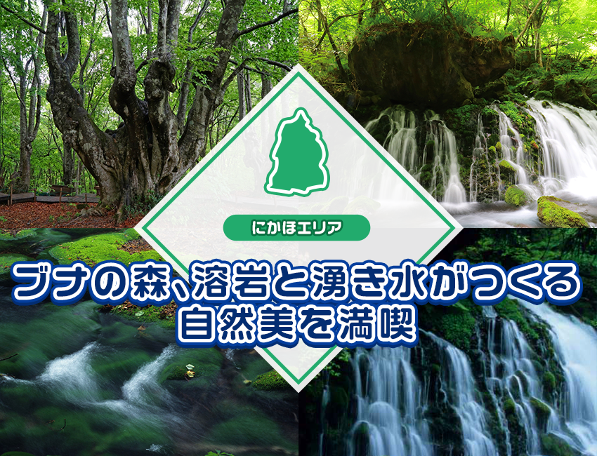 - にかほエリア ブナの森、溶岩と湧き水がつくる自然美を満喫