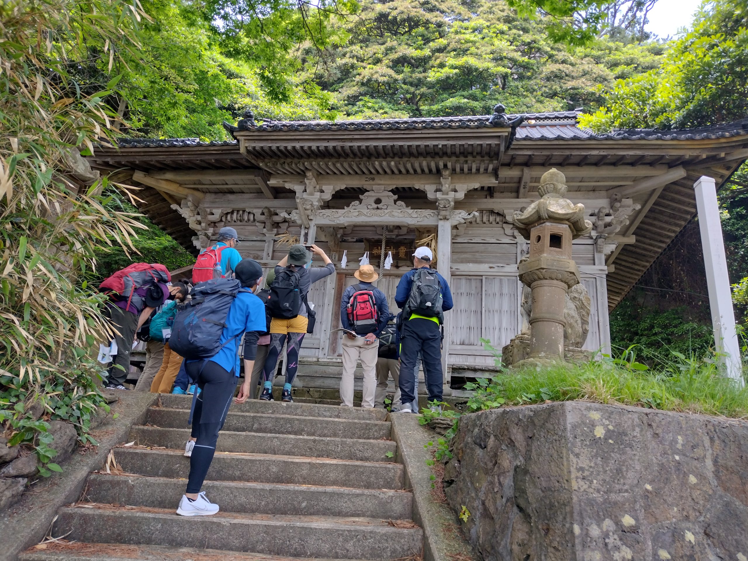 島の西沖約2kmにある御積島の洞窟が本殿で、光輝く龍の鱗のような形状の岩壁があり龍神様を祀っています。