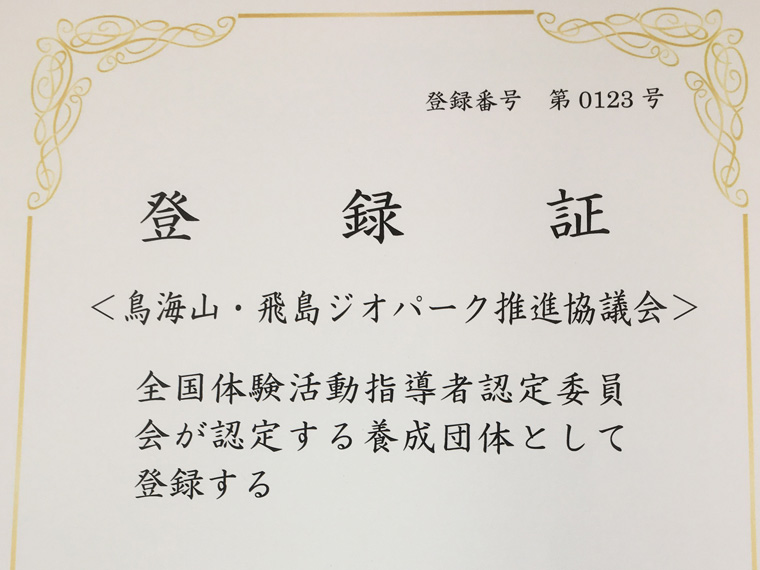 この度、鳥海山・飛島ジオパーク推進協議会が「自然体験活動指導者(NEAL)」の養成団体として、全国体験活動指導者認定委員会より認定を受けました。