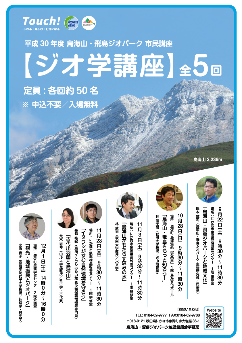 鳥海山・飛島ジオパーク推進協議会では、ジオパークについてわかりやすく学ぶ講座を全5回にわたり開催します。