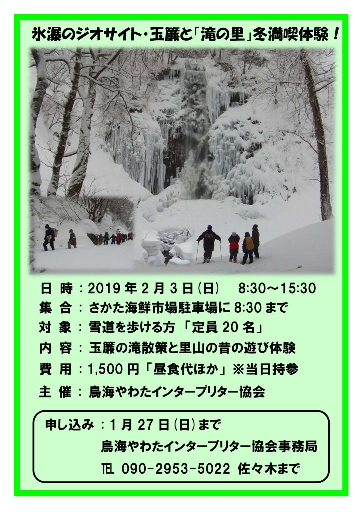 鳥海やわたインタープリター協会がジオサイト「玉簾の滝」をご案内します。