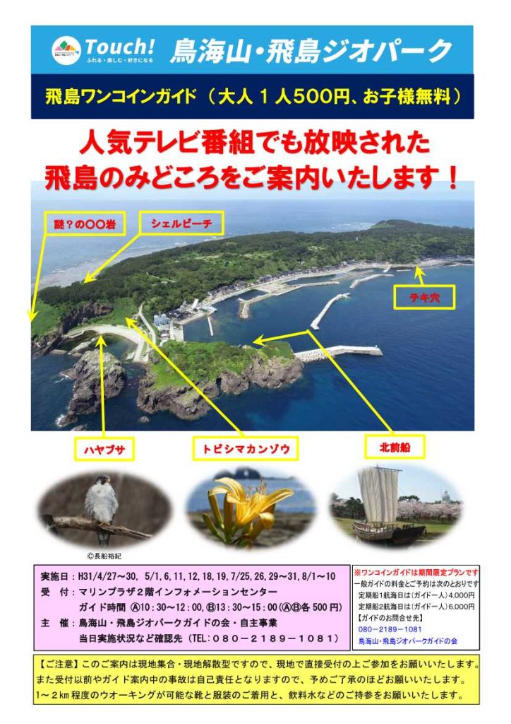 飛島ワンコインガイド (大人1人500円、お子様無料)