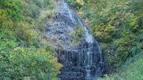 二ノ滝の手前にある一ノ滝も落差約20mで、滝が滝壺に流れ落ちる様子を眺めることができます。ここも安山岩の溶岩ですが、滝壺の少し上の岩が水の力でえぐられていることがわかります。