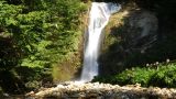 駐車場から二ノ滝まではブナなどの広葉樹林の緑豊かな渓谷が広がっていて、鳥海山の水の豊かさと自然の豊かさを四季を通して楽しむことができます。鳥海山では噴火の時に流れ出した溶岩がつくり出した地形を広い範囲で見ることができますが、二の滝は「鳥海山の水と溶岩が作った寄り添うように流れる二筋の滝」です。